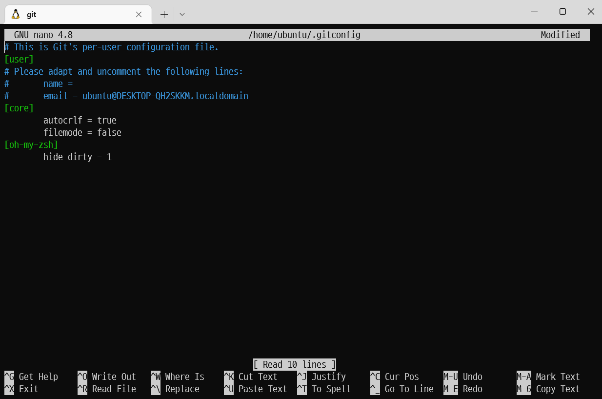 $ git config --global -e // 제대로 설정되었는지 확인.