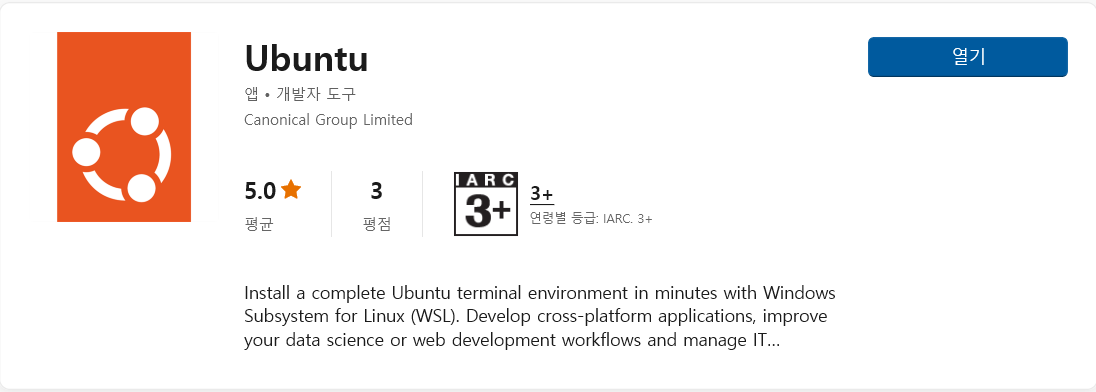 Microsoft store 실행 후 Windows Terminal 과 Ubuntu 검색해서 설치