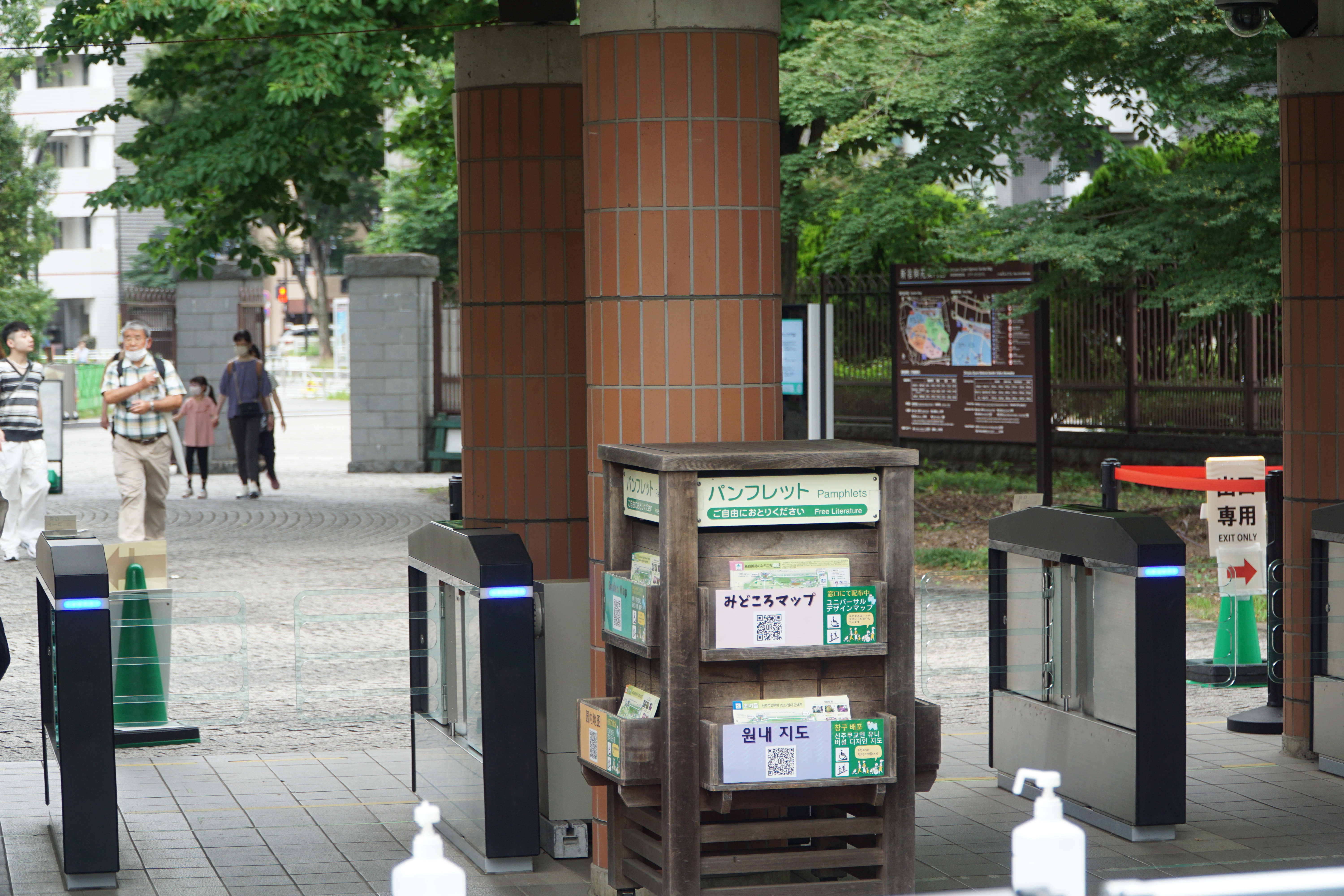 평일 오전에는 근처 체육관에 가는 학생들이 역 출입구에 많이 있었습니다.