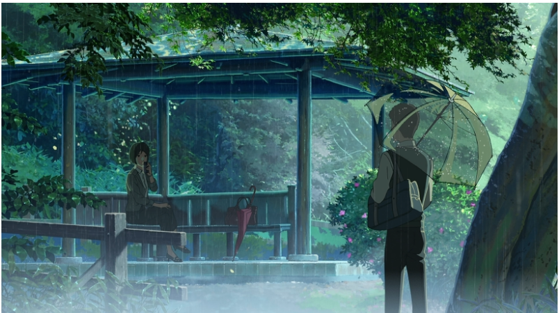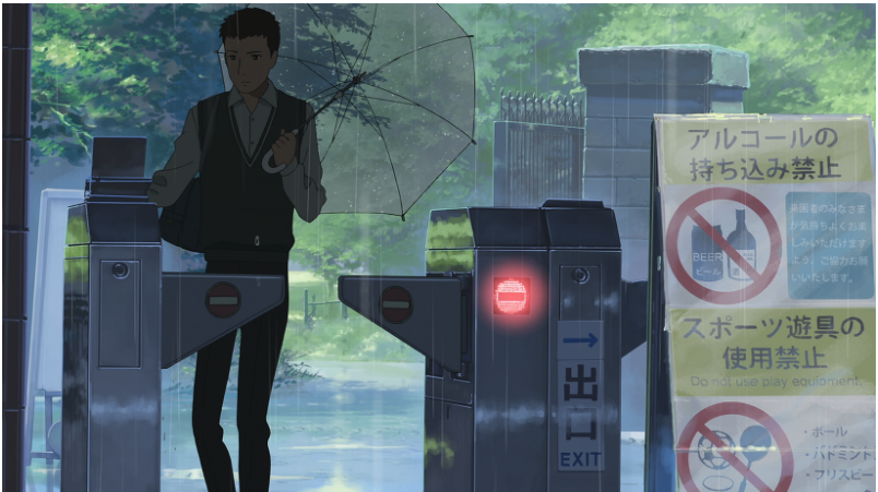 센다가야역 바로 옆에 있는 터널을 지나면 "언어의 정원"에서 스쳐지나가는 한 장면을 찾을 수 있습니다