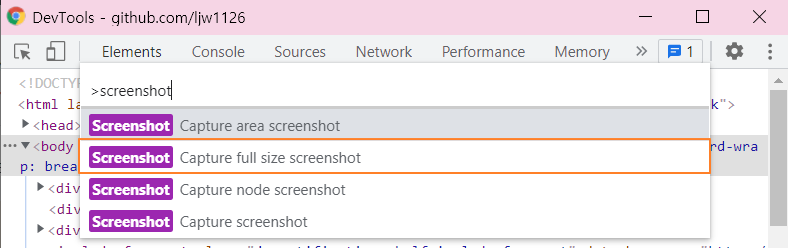 - Ctrl+Shift+p 누르면 개발자도구에 검색창이 나타남