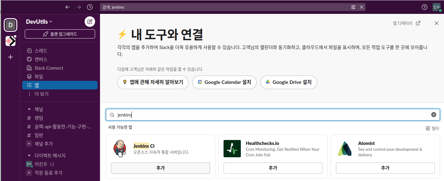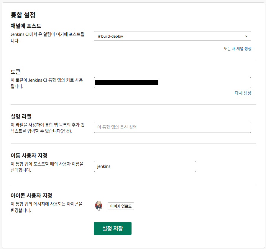 사용할 채널을 선택하고 Slack Token을 발급받고 가이드에 따라 Jenkins 설정에 해당 토큰을 등록 후 사용