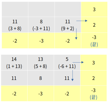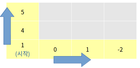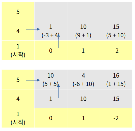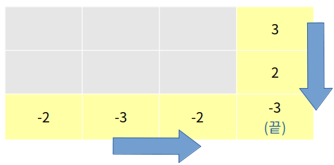 3행 1열에서 하강을 시작했을 때 얻을 수 있는 값이 -2라는 뜻