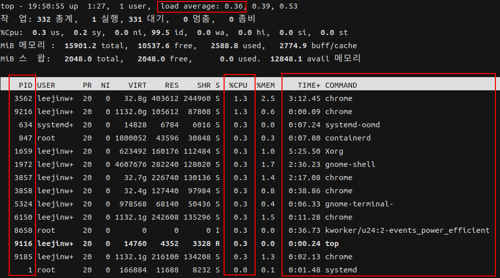 예) ctrl + c 프로세스 종료, ctrl + r 되살리기, ctrl + z 프로세스 일시 정지