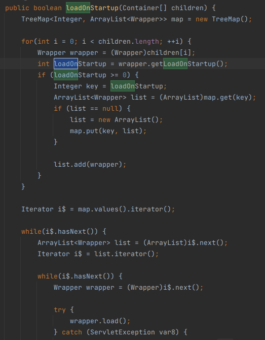 loadOnStartup() 메서드에서 children은 Container 안에 있는 Servlet들을 말하며 loadOnStartup 속성값이 0이상인 경우 리스트에 담아 Wrapper.load() 메서드를 실행한다