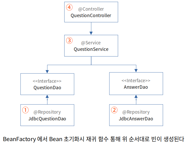 QNA 관련 Controller ~ Repository 클래스도 생성자 주입 및 애노테이션 방식으로 리팩토링하도록 한다(생략)
