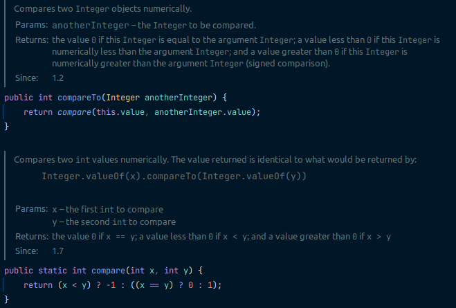 Comparable 구현된 Wrapper Class에 compareTo(..) 를 사용하여 조건식을 수행하였다