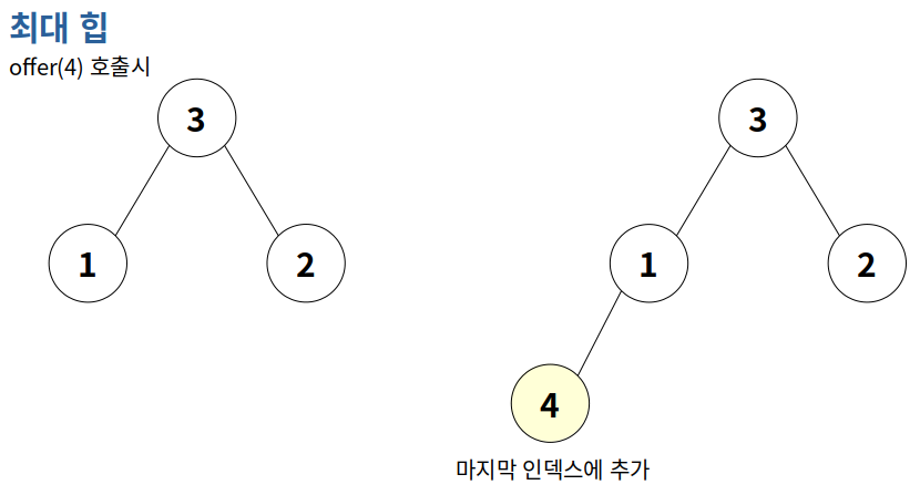 우선 순위 큐에서는 데이터 추가할 경우 아래와 같은 절차를 수행한다