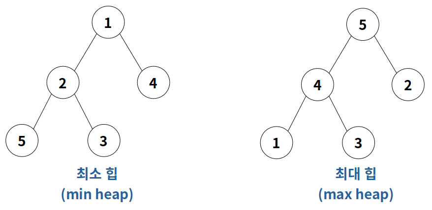 ① 최소 힙 : 부모 노드 ≤ 자식 노드