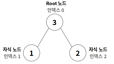 - 예로 k = 2일때 부모 노드는 (k - 1) / 2 = 0 이다