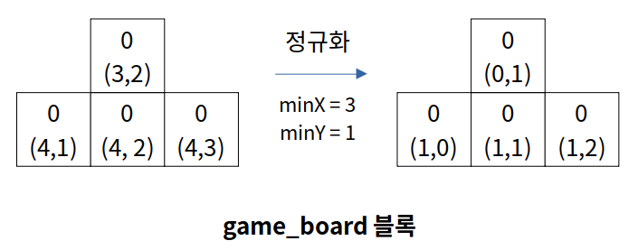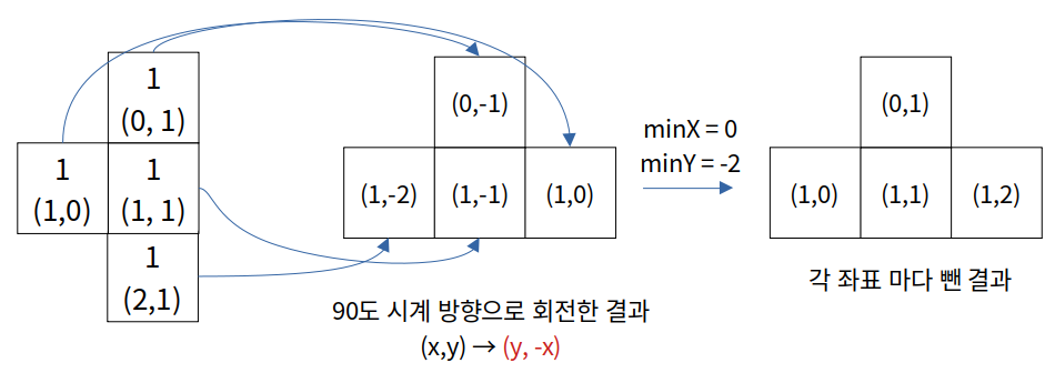 ③ block 회전 시키고, 최소x, y와 좌표값에서 빼준다 (shift 처리)
