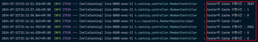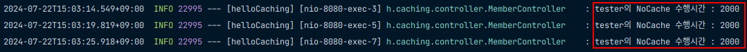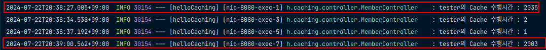 38 분 27초에 최초 호출 후 39분 00초에 호출시 캐시가 만료된 것을 확인가능했다