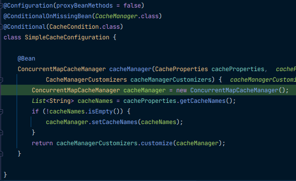 @EnableCaching 애노테이션 추가시 기본적으로 설정된다