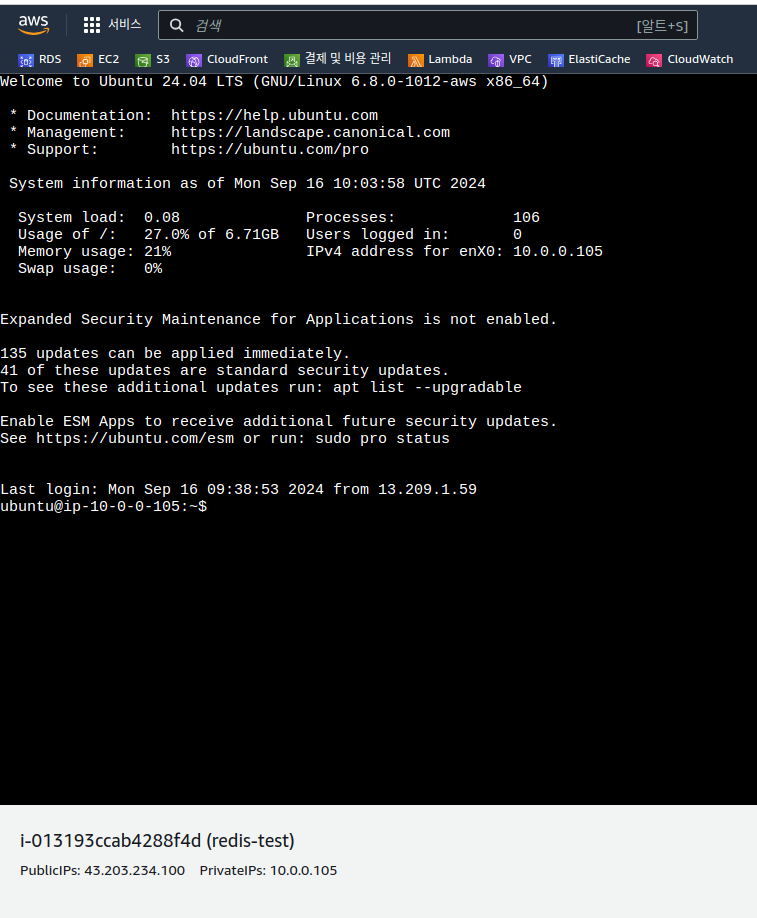 ③ redis-test(*BastionHost) : private subnet 인스턴스 접속 용도