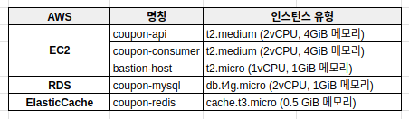 coupon-api, coupon-consumer 서버 둘 다 동일한 스펙으로 생성한다