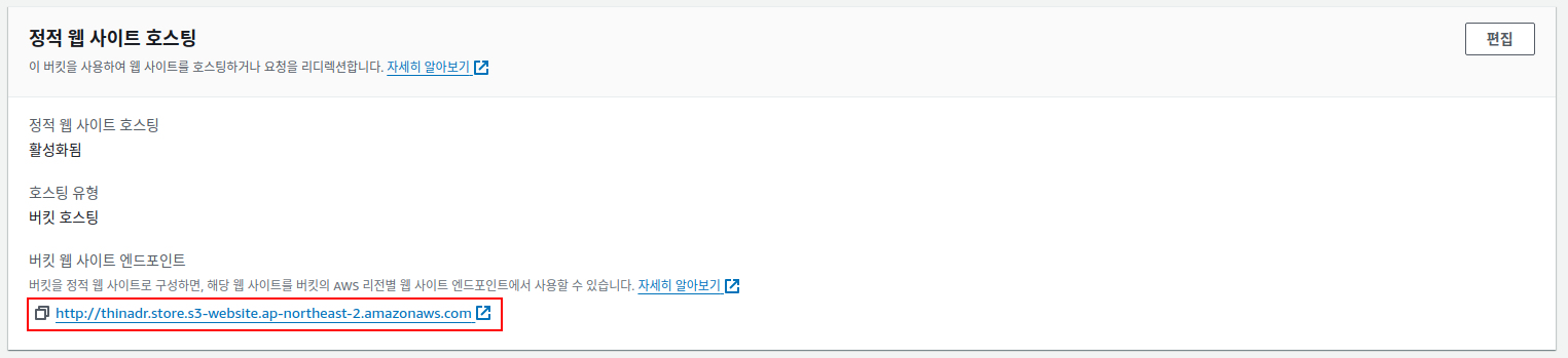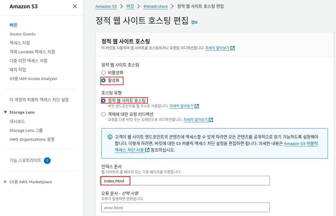 참고. 공식 자습서: Amazon S3에서 정적 웹 사이트 구성