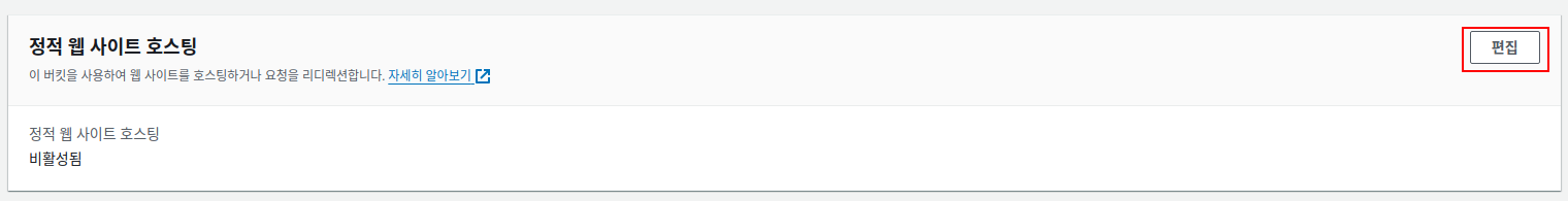 맨 끝에 정적 웹 호스팅 편집 버튼을 눌러서 정보를 기재해준다