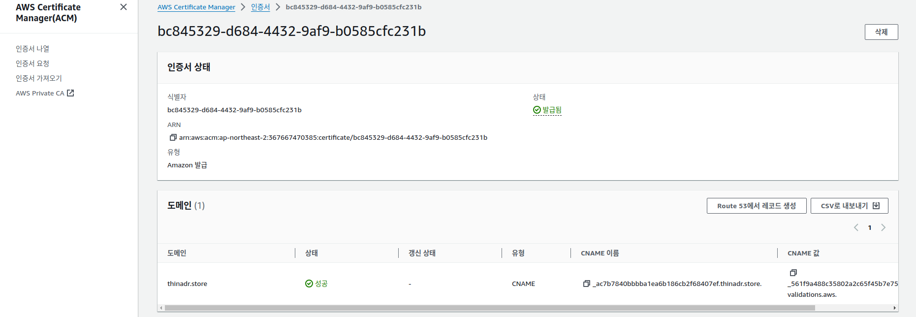 - 인증서 검증 되는데 약 30분 정도 기다려야 한다