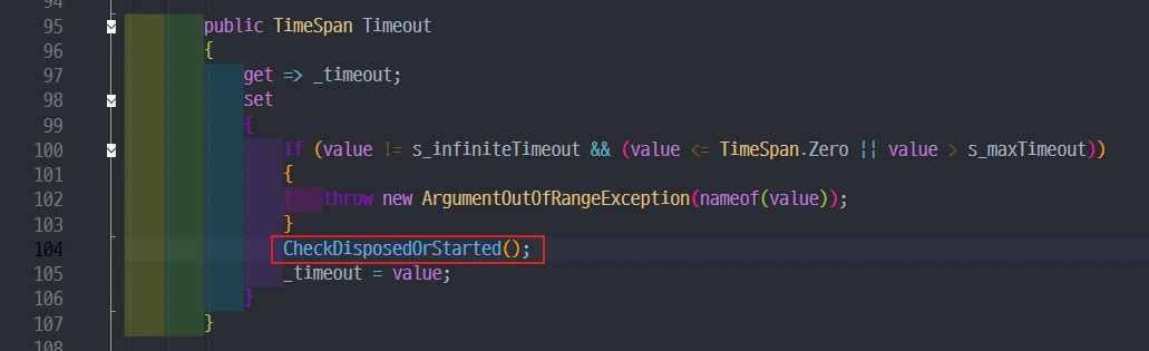 - 이 플래그가 세워지는 순간, set_Timeout 호출 시 CheckDisposedOrStarted()에 의해 즉시 예외가 터집니다.