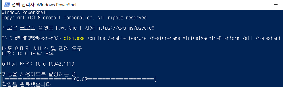 $ dism.exe /online /enable-feature /featurename:VirtualMachinePlatform /all /norestart