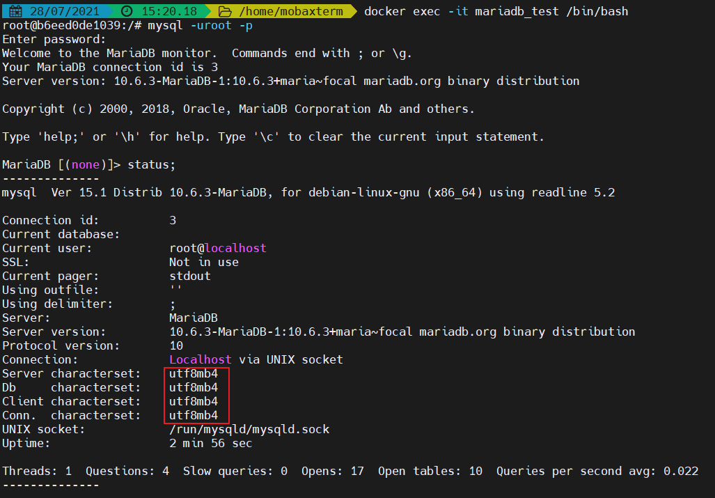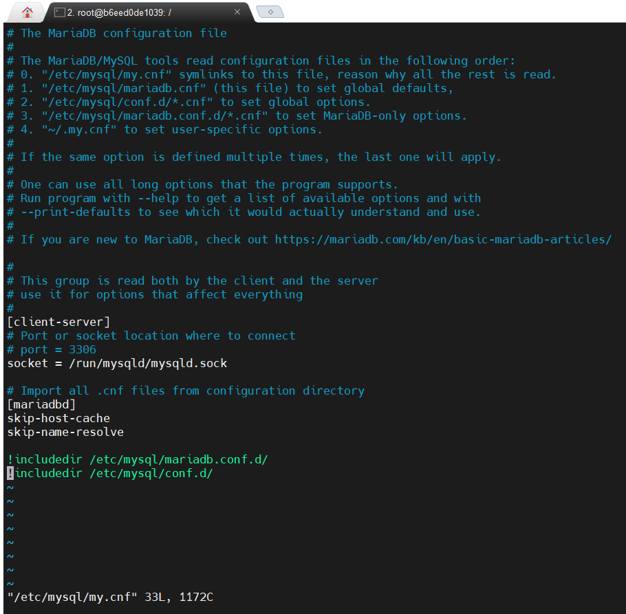 $ docker exec -it mariadb_test /bin/bash //mariadb_test는 3번에서 정한 name