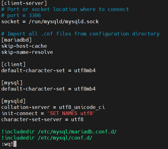 ① vim insert 모드로(i 명령어) 아래 설정을 적절한 위치에 붙여 넣고 저장한다 ( ctrl + c 후 shift + Insert )